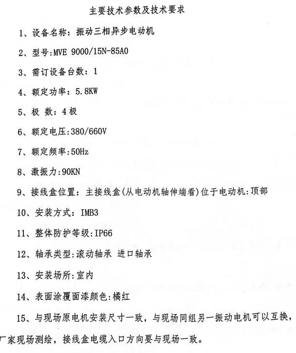 求購臥式離心振動脫水機振動三相異步電動機1臺,要求如下: