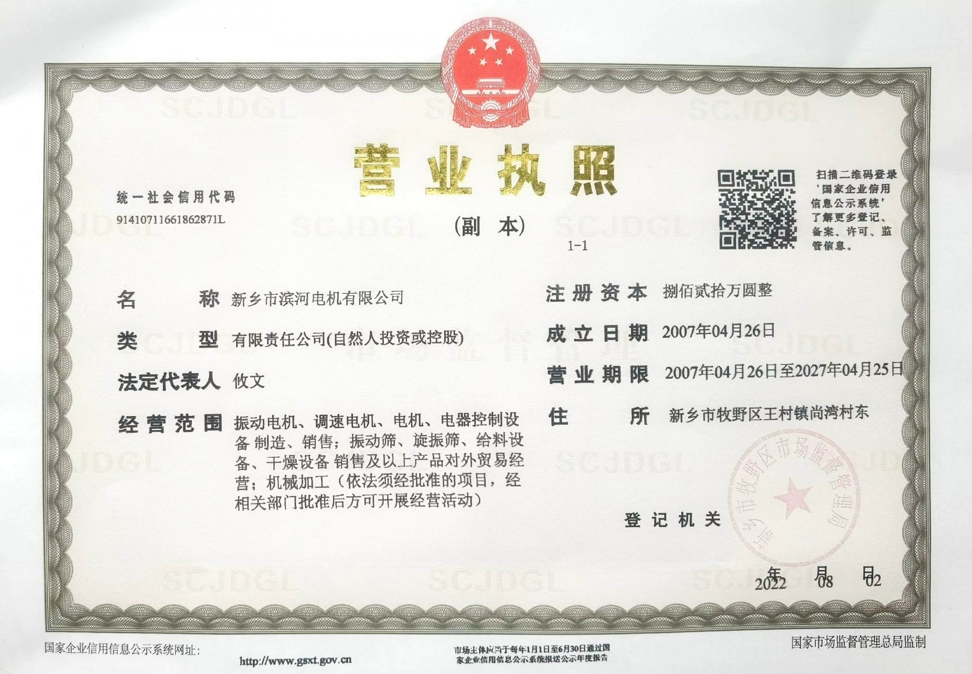 營業(yè)執(zhí)照 新鄉(xiāng)工商行政管理局牧野分局 2007-04-26 2027-04-25