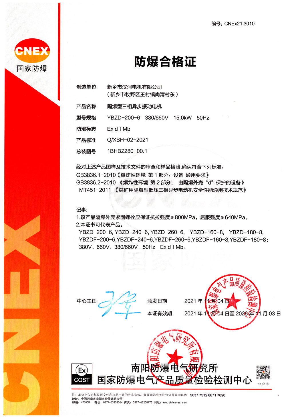 防爆合格證 國家防爆電氣產(chǎn)品質(zhì)量監(jiān)督檢驗中心 2021-11-04 2026-11-03
