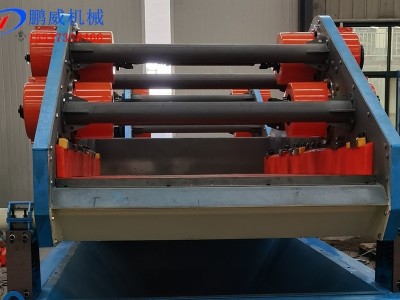 支撐裝置(底座和減振裝置)、篩箱、振動(dòng)電機(jī)組成。 1、支撐裝置:篩體由四個(gè)支承裝置支撐,每個(gè)支撐裝置由橡膠彈簧、固定篩體卡、彈簧導(dǎo)向座、彈簧支座等組成。橡膠彈簧是減振裝置中不可缺少的元件,減少篩體對(duì)地基的動(dòng)負(fù)荷。 2、篩箱:篩箱由篩框、篩板及壓緊裝置組成。 篩框:由高強(qiáng)度鋼板與加強(qiáng)角鋼組成的側(cè)板、鋼管、角鋼、槽鋼等焊接而成,內(nèi)側(cè)焊有支撐篩板的托架。 篩板:?jiǎn)螌雍Y的篩板使用不銹鋼條縫焊接網(wǎng)篩板,條縫寬度為0.3mm、0.5mm、0.6mm不等,可按客戶脫水要求選擇;雙層篩的下層篩板與單層篩相同,上層篩板一般采用不銹鋼編織網(wǎng),也可采用不銹鋼條縫焊接網(wǎng)。 脫水篩如何處理煤泥脫水: 直線脫水篩采用最新型的技術(shù)理念,通過膠帶聯(lián)軸分別驅(qū)動(dòng)振動(dòng)器作同步反向運(yùn)轉(zhuǎn),兩組偏心質(zhì)產(chǎn)生的離心力沿振動(dòng)方向的分力疊加,反向離心抵消。從而形成單一的沿振動(dòng)方向的激振動(dòng),使得篩箱做往復(fù)直線運(yùn)動(dòng)。在篩網(wǎng)的往復(fù)運(yùn)動(dòng)過程中原煤中50%-80%的灰分、30%-40%的全硫或60%~80%的無(wú)機(jī)硫被處理,最后經(jīng)由脫水篩進(jìn)行最后的脫水、脫介處理,得到優(yōu)質(zhì)的精煤。 精煤與原煤相比優(yōu)勢(shì)眾多,精煤的精煤灰份,硫比較低,雜質(zhì)少,純度高,較硬。因其硬度好,不易風(fēng)化,不怕雨水日曬,可存放六個(gè)月之久,中大塊甚至存放一年而不被風(fēng)化。所以精煤生產(chǎn)適用現(xiàn)代社會(huì)的發(fā)展需要,而隆中的精煤脫水直線篩的應(yīng)用促進(jìn)精煤行業(yè)的發(fā)展。 精煤脫水直線篩型號(hào)及參數(shù)表: