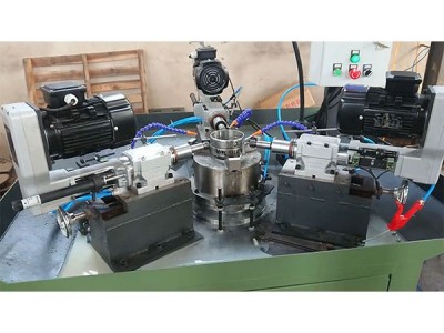 軸承圈-3軸氣動自動鉆孔機(jī)的機(jī)器原理及說明: 1、本機(jī)由3臺74氣動鉆孔動力頭(主軸電機(jī)0.75KW),臥式安裝各成等分120角。(進(jìn)給為 油壓緩沖器調(diào)節(jié)快慢速進(jìn)給,行程為80MM。用來鉆等分3個(gè)孔。氣動(立式內(nèi)置氣缸卡盤)卡盤250,下面加裝升降結(jié)構(gòu)。 2、3個(gè)動力頭下面加裝橫向滑臺,可手動調(diào)節(jié)距離行程150MM位置。 3、機(jī)臺上安裝一臺氣動(立式內(nèi)置氣缸卡盤、直徑 250MM)。 4、380/220V 電源;氣源壓力 6-8KG。 5、卡盤處可實(shí)現(xiàn)高度調(diào)節(jié),調(diào)節(jié)行程100mm(調(diào)整結(jié)束具備鎖緊功能)。 6、鉆套配ER16的,筒夾直徑3MM各配3只。 7、電源采用三相四線制(三根火線L1、L2、L3,一根零線N)380V/220V,總進(jìn)線采用四芯電纜2.5平方以上;氣源壓力8KG,總進(jìn)氣管直徑為8MM。 軸承圈-3軸氣動自動鉆孔機(jī)的優(yōu)點(diǎn)及使用范圍: 1、本機(jī)具有結(jié)構(gòu)合理,操作方便安全可靠,不易斷鉆頭等特點(diǎn); 2、鉆孔效率高。 3、經(jīng)濟(jì)實(shí)用,投入成本低; 4、本機(jī)適用于在園環(huán)類、軸承圈類、管類、園柱類等零件、園柱面上鉆三等分的3個(gè)鉆;直徑及高度都可調(diào),屬通用機(jī)型。