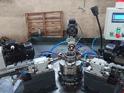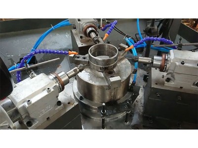 軸承圈-3軸氣動自動鉆孔機(jī)的機(jī)器配置: 1、 冷卻:40W水泵,1臺。 2、 動力頭:74型氣動鉆孔動力頭(主軸電機(jī)0.75KW,380V;行程80MM),3臺。 3、 動力頭平行夾具:UBOST-CN-74,3臺。 4、 夾緊方式:氣動(立式內(nèi)置氣缸卡盤)卡盤250,1臺。 5、 主軸轉(zhuǎn)速(rpm):2000可選。 6、 數(shù)控系統(tǒng):UBOST-CN-HJ3510單軸控制數(shù)控系統(tǒng),1臺。 7、 本機(jī)適應(yīng)鉆孔的工件范圍:直徑:60-280MM,鉆孔數(shù)量:3個(gè)。鉆孔直徑2-10MM。 8、 380V電源;氣源壓力6-8KG。功率:2.5KW。 10、外形尺寸:1200×1000×1100MM,機(jī)器重量:500KG。 11、效率:12-15秒/件。