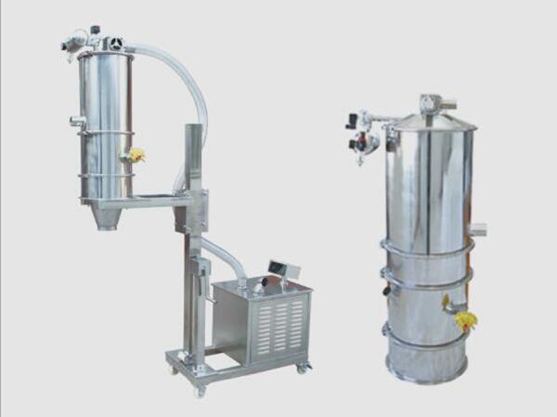 真空上料機是一種粉狀料、粒狀料、粉粒料混合料的真空輸送設備。真空加料機能自動地將各種物料輸送到料倉、包裝機、注塑機、粉碎機等設備的料斗中,也能直接把混合的物料輸送到混合機(如V型混合機、二維混合機、三維混合機等)中,減輕了工人的勞動強度,解決了加料時粉塵外溢等問題,是制藥廠、食品廠、促進清潔、文明生產的設備。