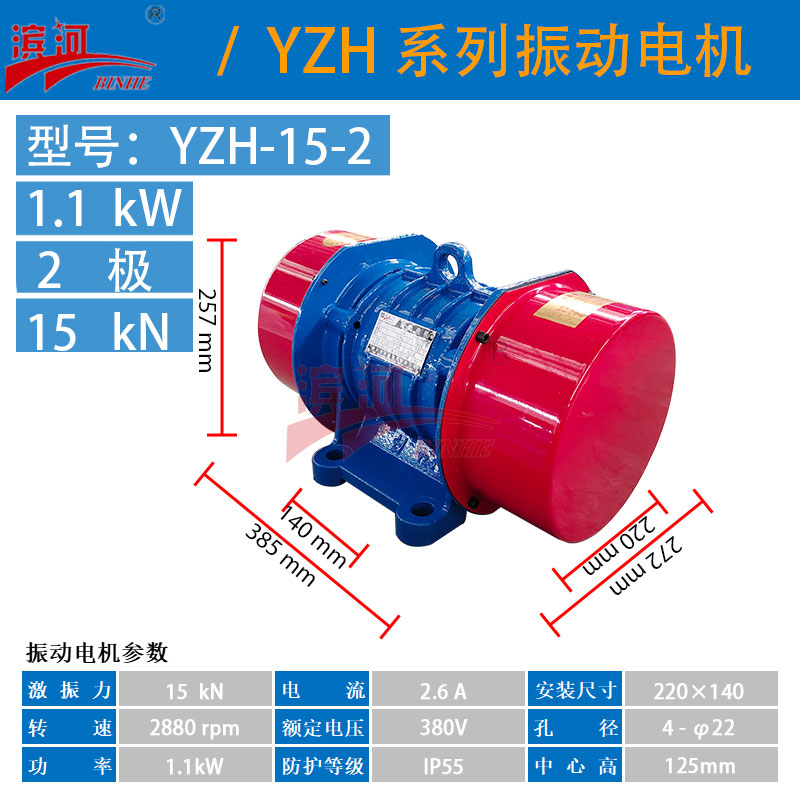 高性能:YZH-15-2振動電機具有較高的振動頻率和振幅,可以滿足各種物料輸送和處理的需求。