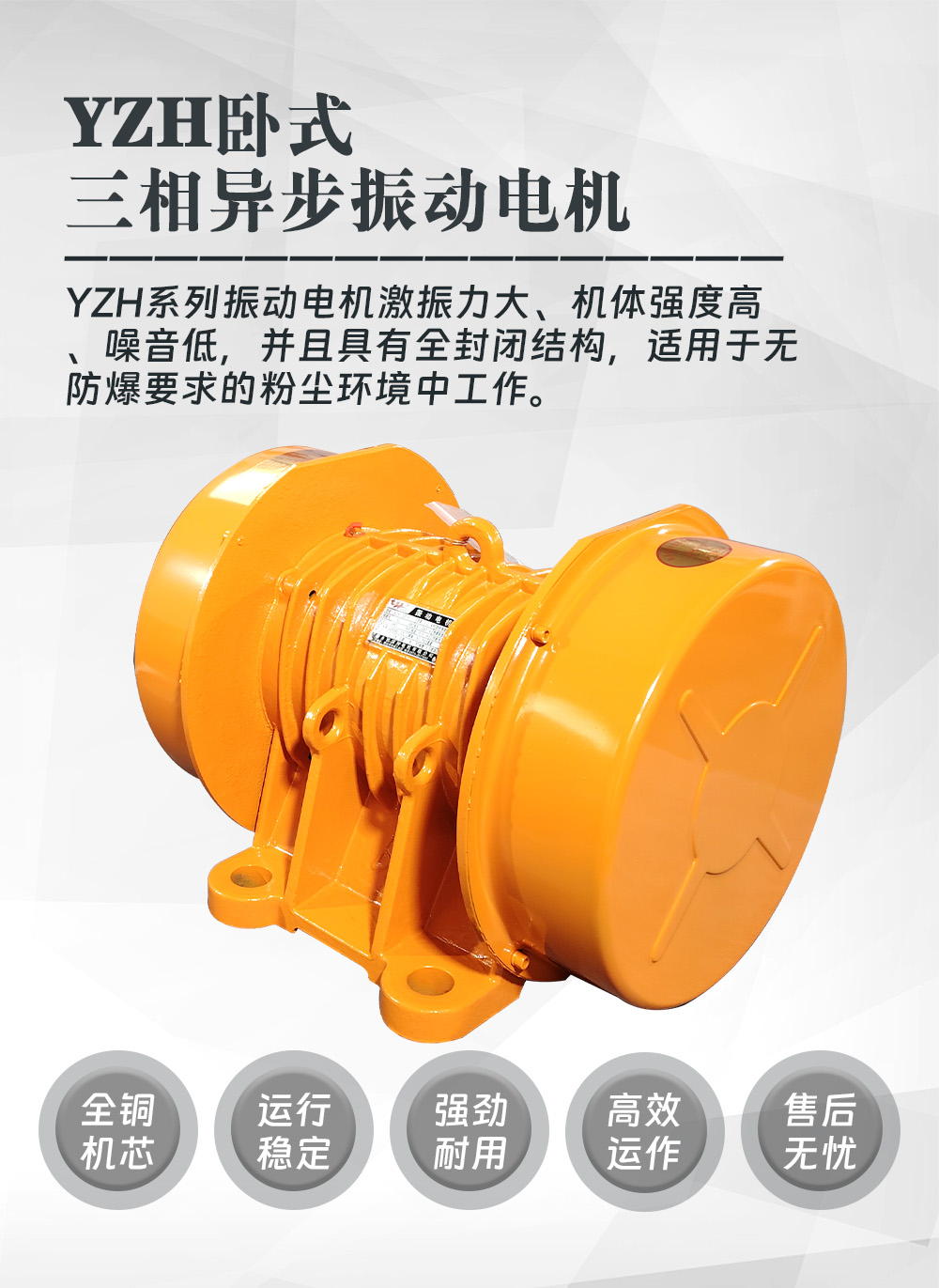 設計科學,結構簡單:YZH系列振動電機的設計科學,結構簡單,具有低噪音和長壽命的特點。