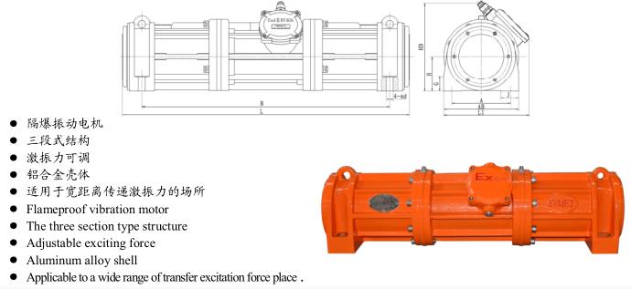 VLBL系列法蘭式隔爆振動電機,功率1.3~2.4KW,4極,激振力為25~50KN,共計4個規格,廣泛應用于油田、礦山、化工等行業。