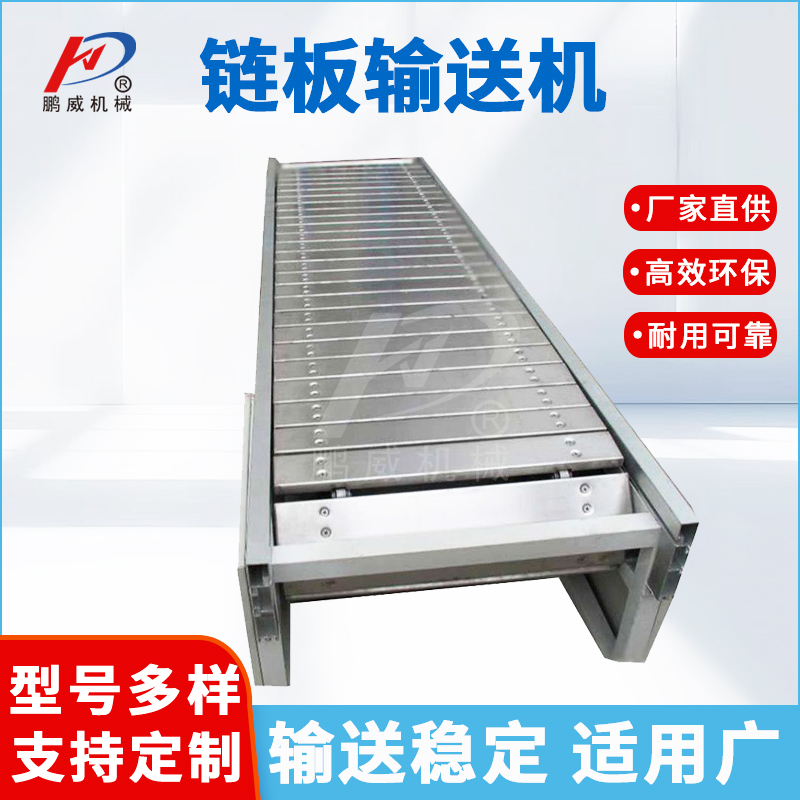 材質:碳鋼、不銹鋼、塑鋼,根據產品的需要可選取不同寬度、不同形狀的鏈板來完成平面輸送、平面轉彎、提升、下降等要求。