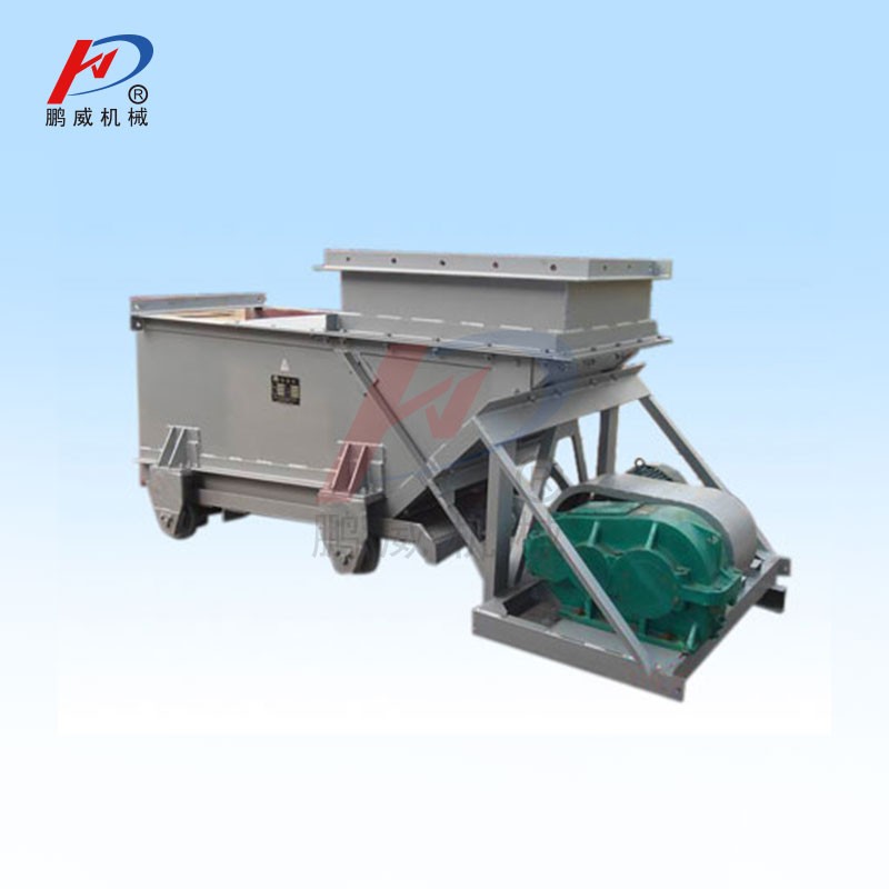 給煤機工作原理:當(dāng)電動機開動后,經(jīng)彈性聯(lián)軸器、減速器、曲柄連桿機構(gòu)拖動傾斜的底板在插輥上作直線往復(fù)運動,將煤均勻地卸到運輸機械或其它篩選設(shè)備上。該機設(shè)有帶漏斗、帶調(diào)節(jié)閥門和不帶漏斗、不帶調(diào)節(jié)閥門兩種形式。