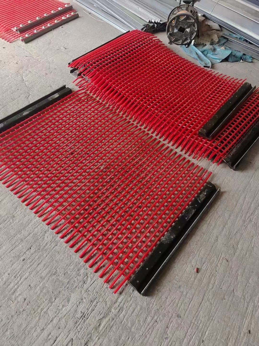 聚氨酯篩網(wǎng)是一種以聚氨酯為質(zhì)料出產(chǎn)的網(wǎng)狀成品,主要應(yīng)于洗煤廠、焦化廠、礦山、電廠、疏浚公司、冶金、石油、石化等公司。 聚氨酯篩網(wǎng)是一種以聚氨酯為質(zhì)料出產(chǎn)的網(wǎng)狀成品.篩板的孔狀為:條縫、矩形、圓形、正方形.酯篩板比不銹鋼篩板一次性投資高(約2倍),但因?yàn)榫郯滨ズY網(wǎng)壽數(shù)是不銹鋼篩板的3~5倍,并且維修和替換次數(shù)少,所以總成本并不高,經(jīng)濟(jì)上也是很合算的。