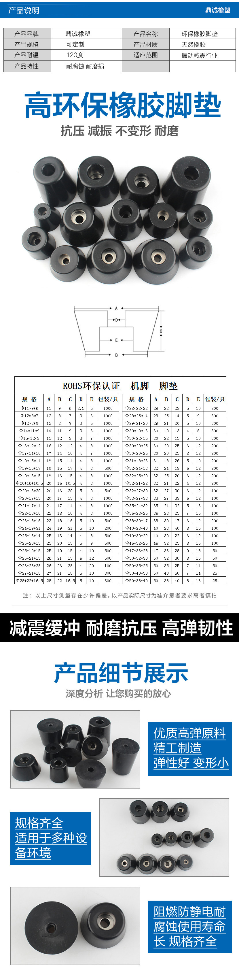 環保橡膠腳墊腳家具桌椅減震腳錐形帶墊片儀器儀表機箱機腳加厚型