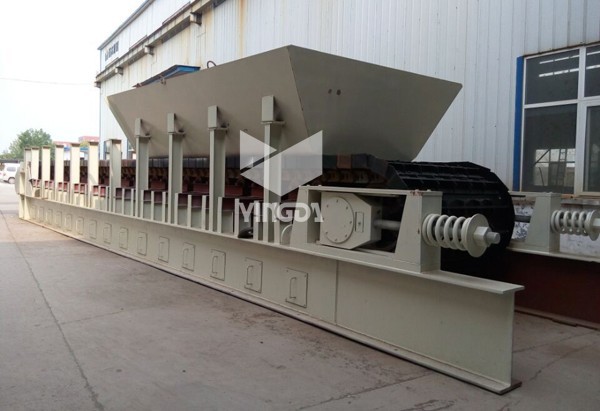 WBZ重型板式喂料機通過驅動裝置牽引鏈條,連接鏈板進行向前輸送物料。鏈板的厚度可以按現場要求來定,輸送量與給料量大,則鏈板厚度加大,專用于輸送小塊狀物料。