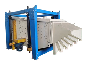 方形搖擺篩是把振動發生器轉換為振動加搖擺運動,傳至篩體,從而使物料在機前篩網前部迅速分散,以此達到高效篩分之目的。