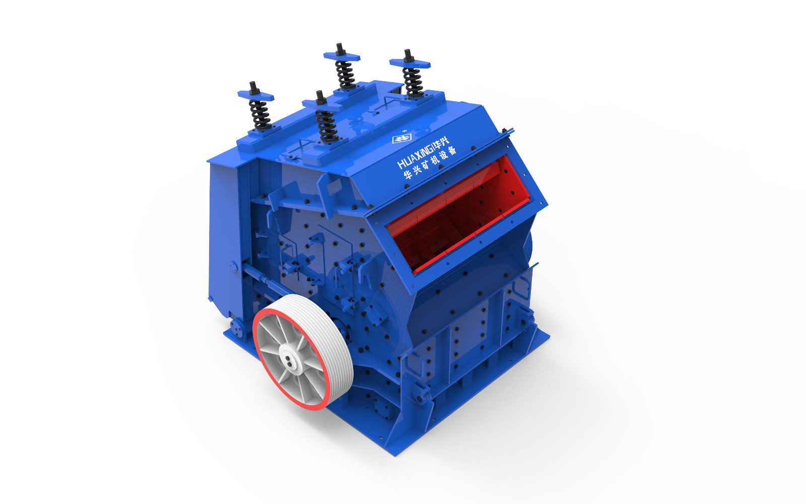 反擊式破碎機在電動機的帶動下,轉子高速旋轉,物料進入板錘作用區時,與轉子上的板錘撞擊破碎,后又被拋向反擊裝置上再次破碎,然后又從反擊襯板上彈回到板錘作用區重新破碎,此過程重復進行,物料由大到小進入一、二、三反擊腔重復進行破碎,直到物料被破碎至所需粒度,由出料口排出。調整反擊架與轉子之間的間隙可達到改變物料出料粒度和物料形狀的目的。產品形狀呈立方體,排料粒度大小可調,廣泛用于水電、高速公路、鐵路、人工砂石、建筑等行業。