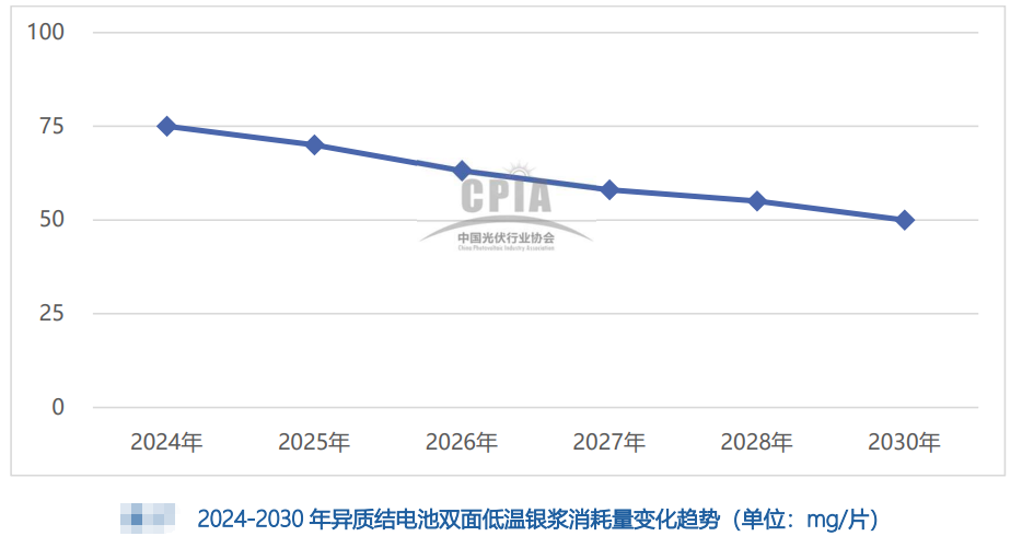 通過2024、2023、2022三年的數(shù)據(jù)對比,n型TOPCon電池雙面銀漿平均消耗量2024年開始加速下降了,2023年同比降低了5.2%的消耗量,而2024年降低了21.1%的消耗量。“銀漿耗量將加速下降”這樣的表述在近些年的路線圖中也是第一次出現(xiàn),值得相關(guān)企業(yè)重視這一趨勢。