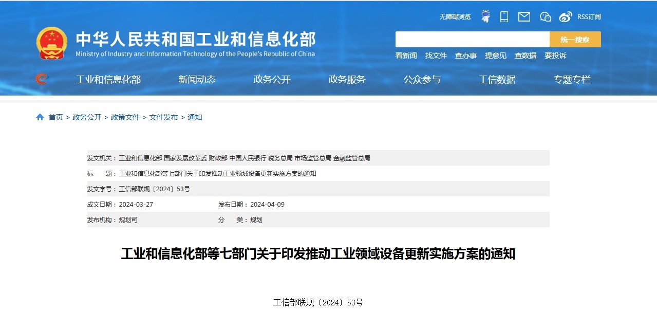 推動工業(yè)領(lǐng)域大規(guī)模設(shè)備更新,有利于擴大有效投資,有利于推動先進產(chǎn)能比重持續(xù)提升,對加快建設(shè)現(xiàn)代化產(chǎn)業(yè)體系具有重要意義。為貫徹落實黨中央、國務院決策部署,推動工業(yè)領(lǐng)域設(shè)備更新和技術(shù)改造,制定如下實施方案。