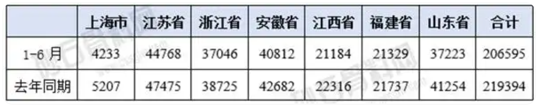 4、華東地區1-6月砂石類礦山出讓情況簡析