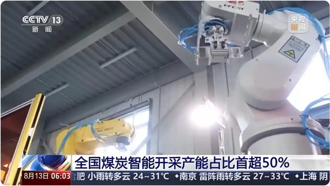 中煤協會數據顯示:全國已建成智能煤礦907處、智能工作面1806個,智能開采產能占比首超50%,替代1.6萬余個高危崗位。