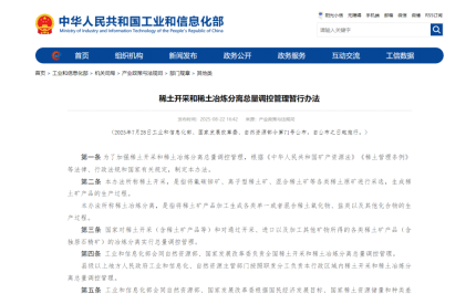 稀土是支撐新一代信息技術(shù)、高端裝備制造、新能源等戰(zhàn)略性新興產(chǎn)業(yè)發(fā)展的關(guān)鍵基礎(chǔ)材料。此前實施的指令性生產(chǎn)計劃管理制度已難以適應(yīng)行業(yè)發(fā)展新形勢。2024年6月,國務(wù)院頒布《稀土管理條例》,明確規(guī)定國家對稀土開采和冶煉分離實行總量調(diào)控,并要求制定具體管理辦法。此次三部門聯(lián)合出臺的《辦法》,正是對該條例的細化落實。