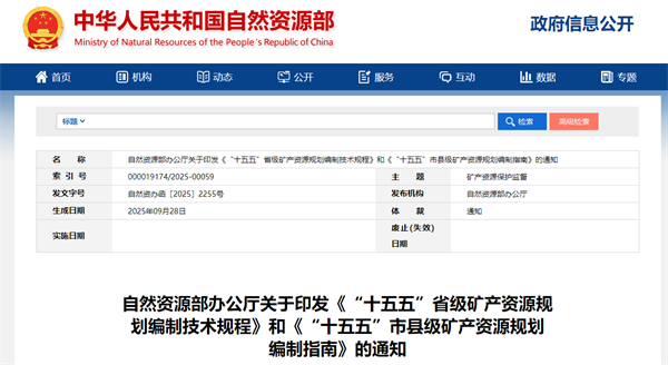 《“十五五”省級礦產資源規劃編制技術規程》印發