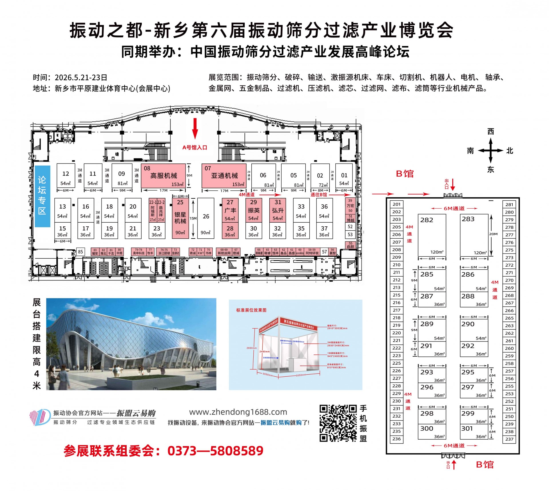 在變革與創新交織的當下,振動篩分過濾行業正站在發展的新風口,機遇與挑戰并存。為搭建全球行業交流橋梁,推動技術迭代與產業升級,備受矚目的第六屆振動篩分過濾產業博覽會暨中國振動篩分過濾產業發展高峰論壇,將于2026年5月21日-23日,在新鄉市平原建業體育中心盛大啟幕!