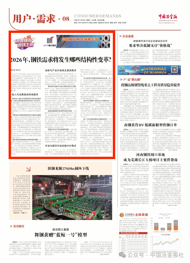 統(tǒng)一大市場建設釋放內(nèi)部需求潛力。該年會提出“綜合整治內(nèi)卷式競爭”“規(guī)范涉企執(zhí)法行為”,將打破區(qū)域市場壁壘,推動鋼材資源高效配置。鋼結(jié)構(gòu)在建筑、交通領(lǐng)域的應用加速推進,預計2026年鋼結(jié)構(gòu)用鋼量增長12%,其中橋梁用耐候鋼、建筑用抗震鋼需求尤為突出。同時,地方自主空間擴大后,各地結(jié)合特色產(chǎn)業(yè)布局的鋼材需求中心正在形成,如西南地區(qū)聚焦水電裝備用鋼,東北地區(qū)強化管線鋼供應,進一步豐富需求層次。