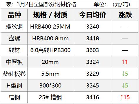 3月2日,鋼材現貨市場穩中下跌,期貨市場主要品種主力全部上漲,其中螺紋、熱卷、鐵礦漲1%左右,焦炭漲1.38%,焦煤漲1.06%。隨著地緣沖突加劇,市場避險情緒升溫,加上兩會政策預期支撐,黑色系集體走強,明日鋼價......