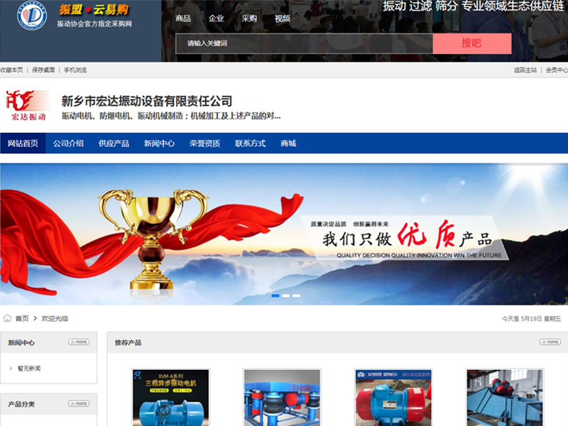 公司主要產品:振動電機,振動篩,振動平臺,防閉塞裝置,倉壁振動器,旋振篩,氣流篩,振動磨機,給料機,混合機,輸送機,提升機,倉壁振動器,YZS振動電機等產品。產品的銷量一直居行業領先。