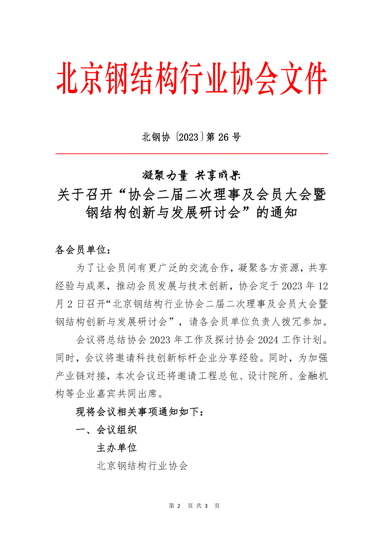 關于召開“協會二屆二次理事及會員大會暨鋼結構創新與發展研討會”的通知