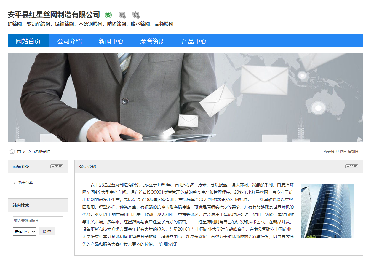 安平縣紅星絲網制造有限公司成立于1989年,占地5萬多平方米,分設拔絲、編織篩網、聚氨酯系列、自清潔篩網車間4個大型生產車間。擁有符合ISO9001質量管理體系的整套生產和管理程序。20多年來紅星絲網一直專注于礦用篩網的研發和生產,先后獲得了18項國家級專利,產品質量全部達到歐盟GB/ASTM標準。