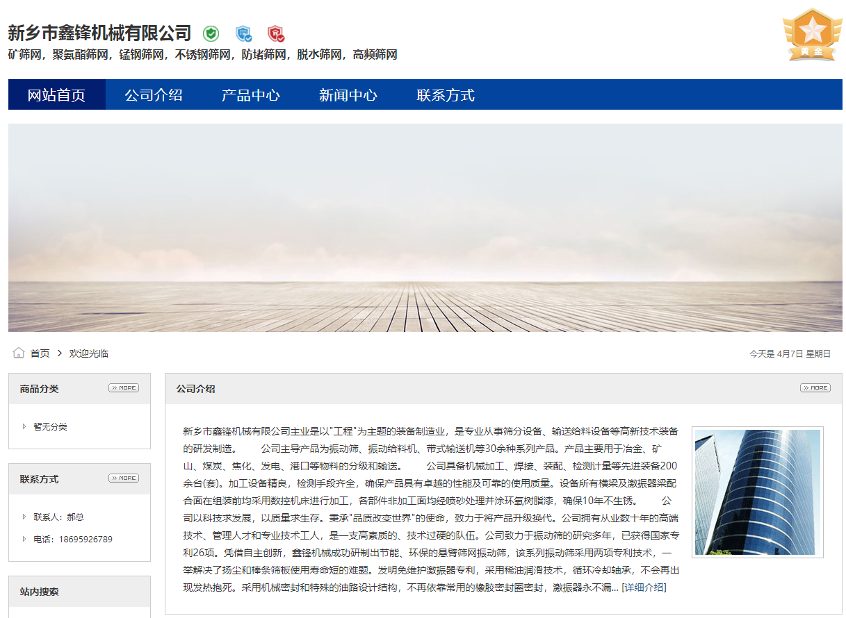 新鄉市鑫鋒機械有限公司主業是以"工程"為主題的裝備制造業,是專業從事篩分設備、輸送給料設備等高新技術裝備的研發制造。