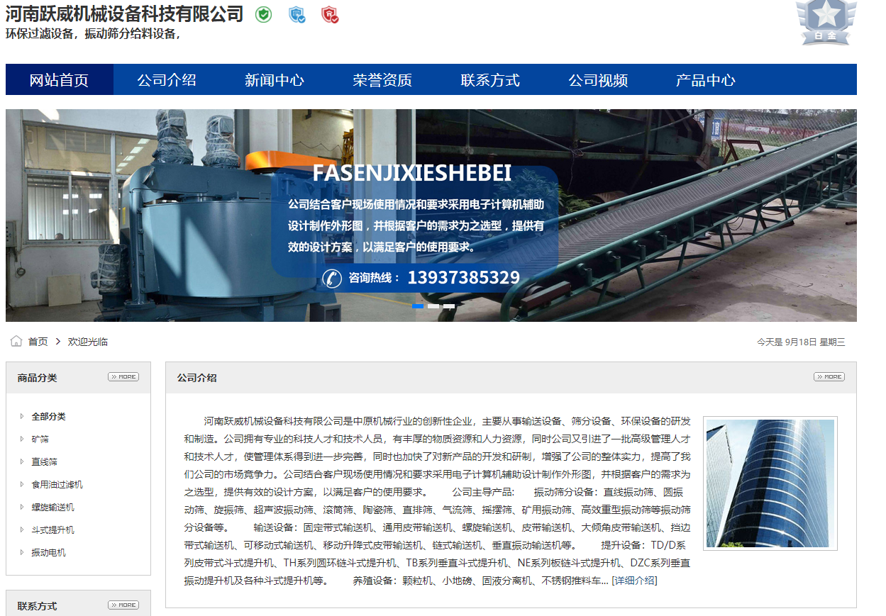 河南躍威機械設備科技有限公司是中原機械行業的創新性企業,主要從事輸送設備、篩分設備、環保設備的研發和制造。公司擁有專業的科技人才和技術人員,有豐厚的物質資源和人力資源,同時公司又引進了一批高級管理人才和技術人才,使管理體系得到進一步完善,同時也加快了對新產品的開發和研制,增強了公司的整體實力,提高了我們公司的市場競爭力。公司結合客戶現場使用情況和要求采用電子計算機輔助設計制作外形圖,并根據客戶的需求為之選型,提供有效的設計方案,以滿足客戶的使用要求。