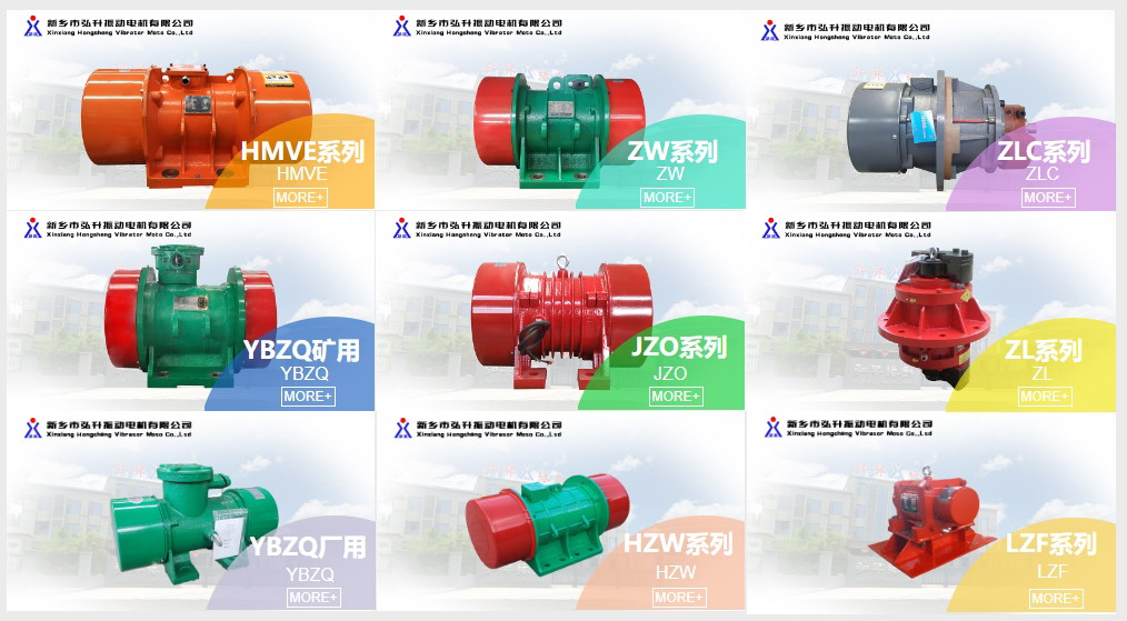 公司主要生產ZW、HZW、HMVE、JZO系列臥式電機, ZL、ZL-C、HMVEL系列立式電機、LZF倉壁振動器、YZBQ系列防爆振動電機。新鄉市弘升振動電機有限公司的各系列振動電機產品己廣泛用于礦山、冶金、鑄造、電力、建材、化工、糧食、醫藥等行業,是各類振動輸送、篩分、干燥、光飾、粉磨、破碎設備的理想動力源。