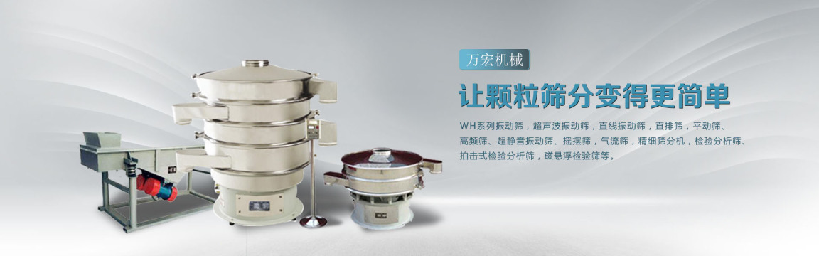主要產品有WH系列振動篩、超聲波振動篩、直線振動篩、搖擺篩、氣流篩、螺旋輸送機、斗式提升機、垂直振動螺旋提升機、水平冷卻輸送機、真空上料機以及實驗室專用檢驗分析篩、拍擊式標準檢驗篩、超聲波檢驗分析篩等。
