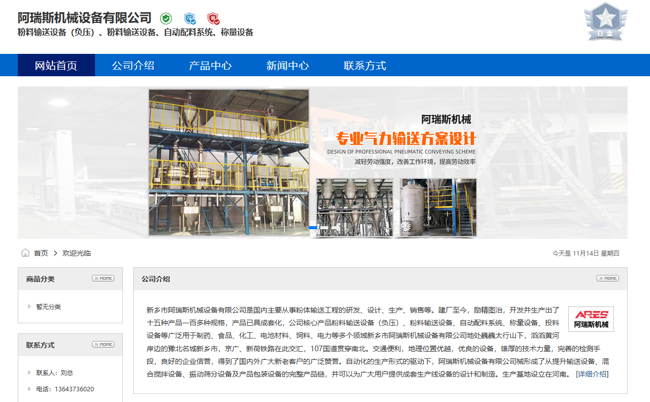 新鄉市阿瑞斯機械設備有限公司是國內主要從事粉體輸送工程的研發、設計、生產、銷售等。建廠至今,勵精圖治,開發并生產出了十五種產品一百多種規格,產品已具成套化,公司核心產品粉料輸送設備(負壓)、粉料輸送設備、自動配料系統、稱量設備、投料設備等廣泛用于制藥、食品、化工、電池材料、飼料、電力等多個領域