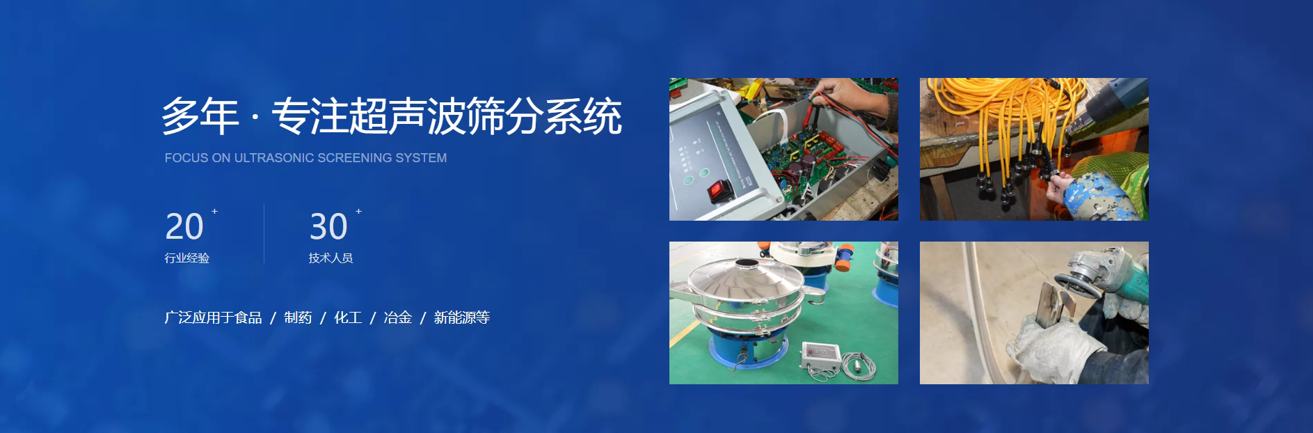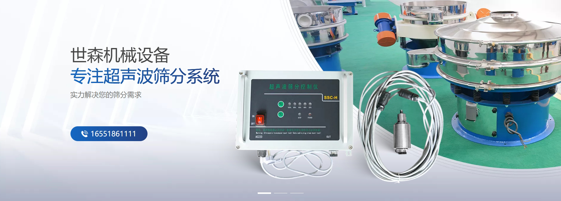 新鄉(xiāng)市世森機(jī)械設(shè)備有限公司是一家從事超聲波系統(tǒng)的研發(fā),生產(chǎn),銷售,服務(wù)于一體的企業(yè)。所生產(chǎn)的超聲波產(chǎn)品已廣泛應(yīng)用于振動篩分領(lǐng)域,在食品,制藥,化工,冶金,新能源等要求精細(xì)篩分過濾的行業(yè)都得到了高效的使用。超聲波控制儀,超聲波換能器,超聲波篩網(wǎng)架,可適用于各種型號的旋振篩,搖擺篩,檢驗篩,在微米范圍內(nèi)將振蕩力均勻的傳輸至網(wǎng)面上,在篩分過程中保證網(wǎng)孔長期不堵。根據(jù)物料顆粒結(jié)構(gòu)不同可以大幅提高生產(chǎn)效率,而且在保證長期高效篩分的同時也能延長篩網(wǎng)的使用壽命。