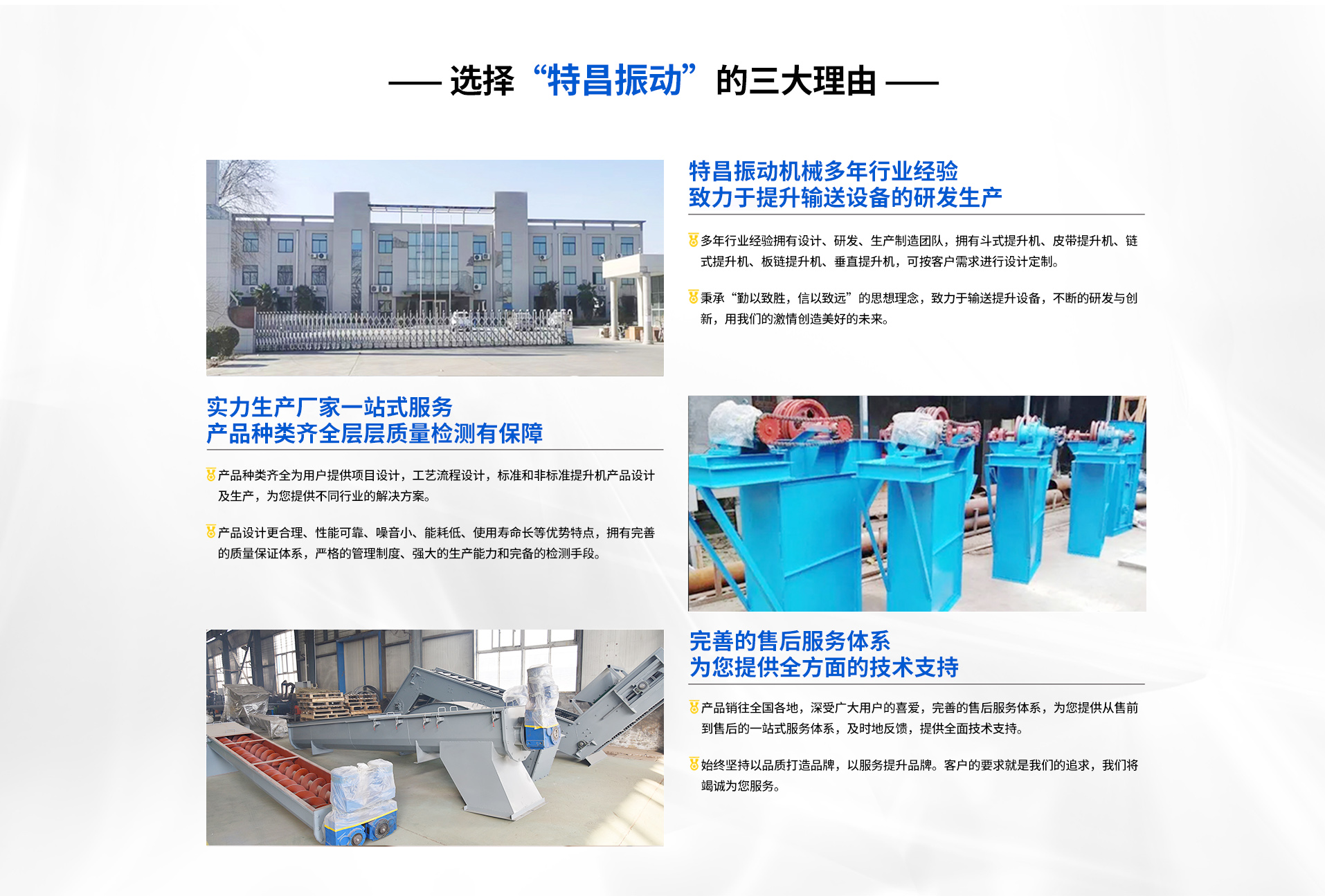 新鄉市特昌振動機械有限公司位于新鄉市北環寺莊頂工業園區,緊鄰京廣鐵路、107國道,地理位置好,交通便利。是一家集設計、研發、生產制造的企業,主要產品有皮帶輸送機、板式給料機、斗式提升機、無軸螺旋輸送機、埋刮板輸送機、大傾角皮帶輸送機、LS螺旋輸送機、滾筒篩、直線篩、圓振篩、各類旋振篩、振動給料機、圓盤給料機、剛性葉輪給料機等上百種產品供您選型,也可根據用戶要求設計制造各種礦用機械產品。