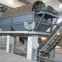 YTS圓筒回轉篩的主體結構是篩分筒,它是由若干個圓型狀篩網組成,整體與地平面成傾斜狀態,外部被密封隔離罩所密封,以防止污染環境。通過變速減速系統使篩分筒在一定轉速下旋轉,物料自上而下通過篩分筒得到分離,細料從篩分筒前端下部排出,粗料從篩分筒下端尾部排出。